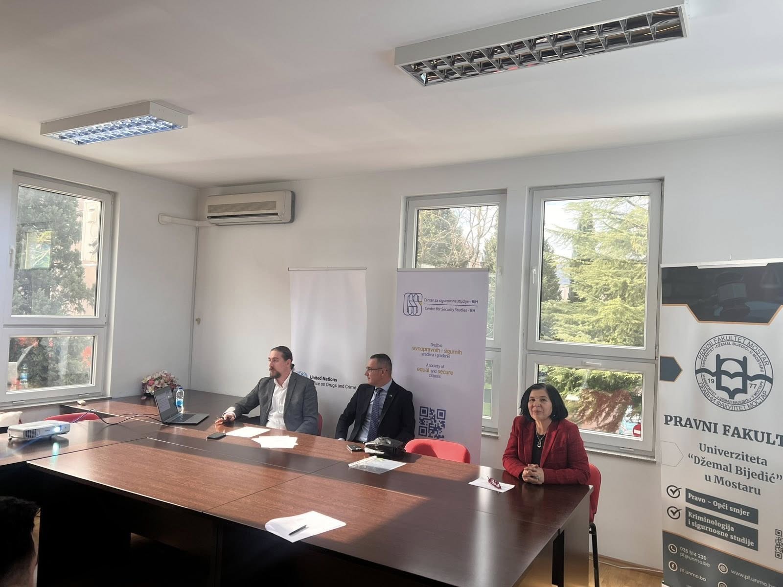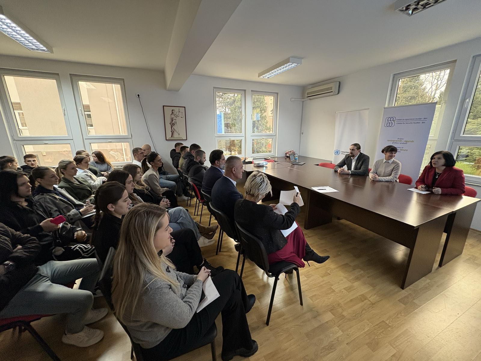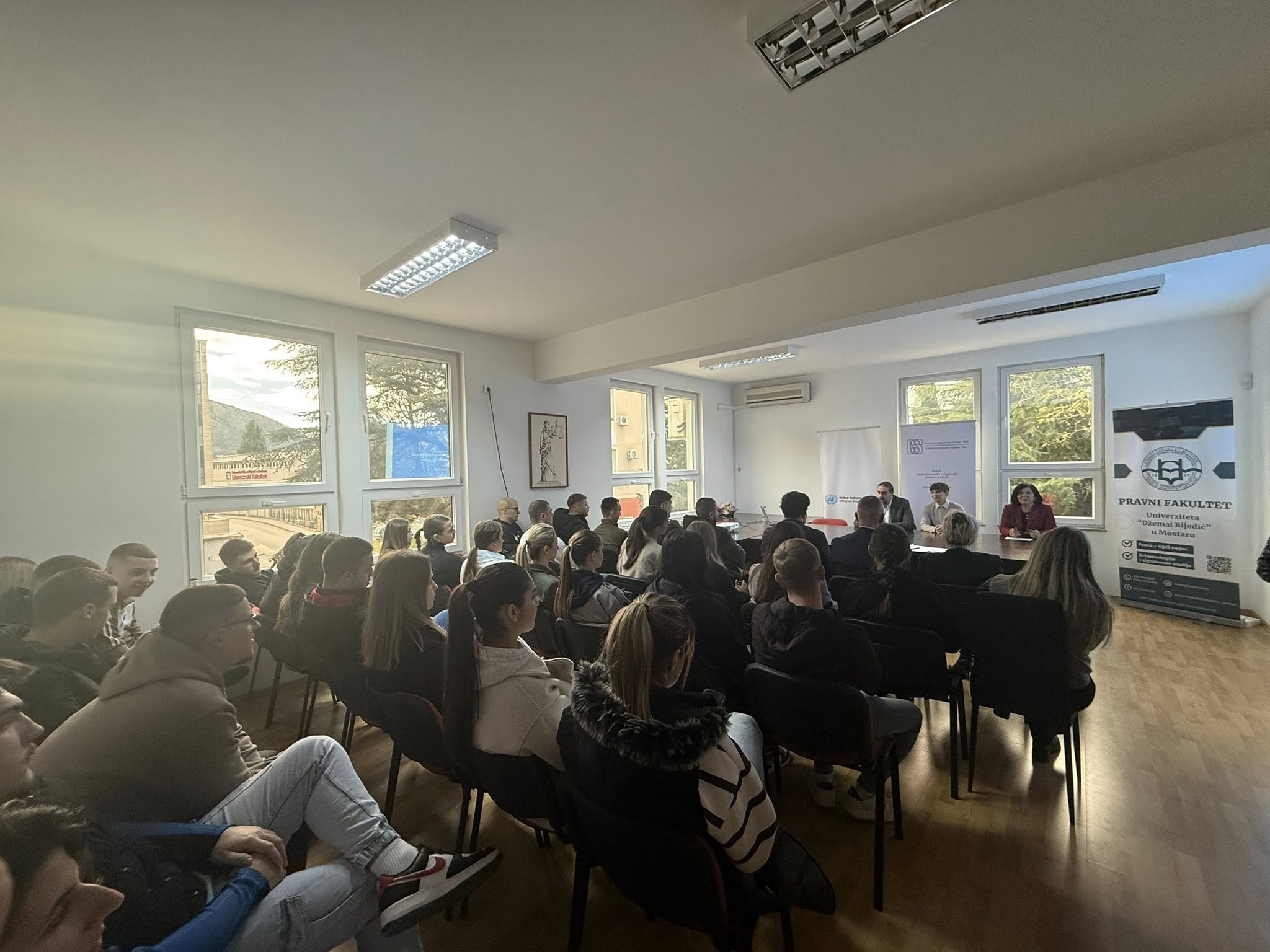 Studenti i studentice Pravnog fakulteta Univerziteta „Džemal Bijedić“ u Mostaru učestvovali su u diskusiji „Mladi protiv sjena: Sigurnost i otpornost u vremenu organizovanog kriminala“, koja je organizovana 28. novembra 2025. godine na našem fakultetu. Diskusiju su organizovali Centar za sigurnosne studije i Pravni fakultet Univerziteta „Džemal Bijedić“ u Mostaru uz podršku Kancelarije UN-a za drogu i kriminal (UNODC).