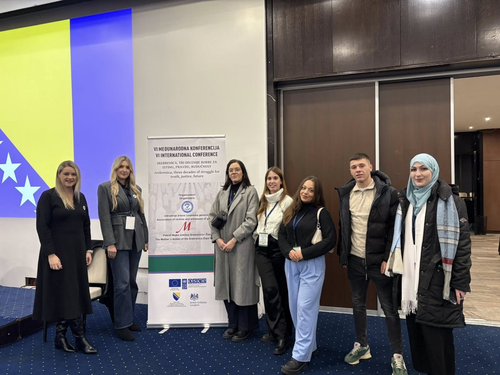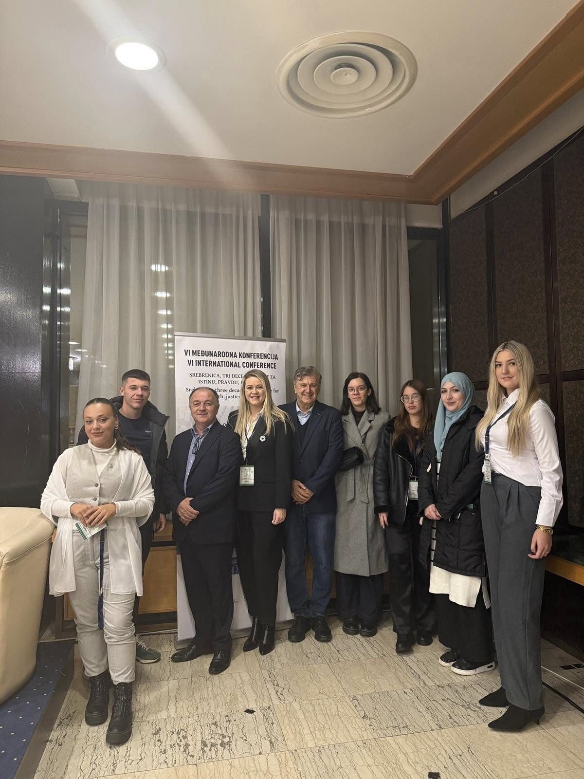 Studenti Pravnog fakulteta Univerziteta “Džemal Bijedić” u Mostaru, Dženita Džafić, Zejna Obradović, Medina Tikveša, Kemal Arap, Ilma Sabljić i Hana Dedić, su zajedno sa doc. dr. Sunčicom Hajdarović i asist. Vildanom Delibašić, imali čast prisustvovati dvodnevnoj VI međunarodnoj konferenciji „Srebrenica, tri decenije borbe za istinu, pravdu, budućnost“, održanoj 26. i 27.11.2025 godine u Sarajevu, u organizaciji Udruženja žrtava u svjedoka genocida i Pokret majke enklava Srebrenica i Žepa.